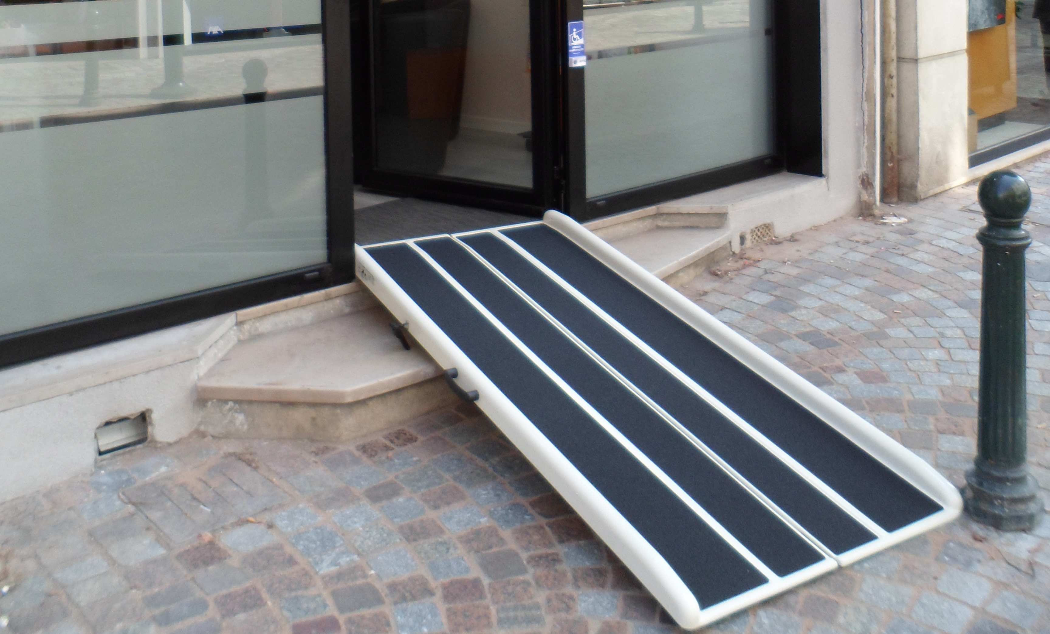 18/06/2015Rampe d’accès handicapé pour extérieur pliable pour un salon de coiffure.Hauteur à franchir 26cm. Merci.