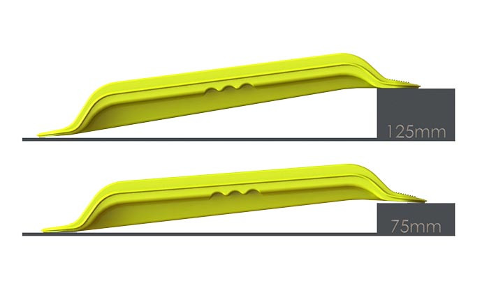 Ces rampes en polyéthylène haute densité permettent de franchir facilement les seuils et dénivelés jusqu'à 125 mm.