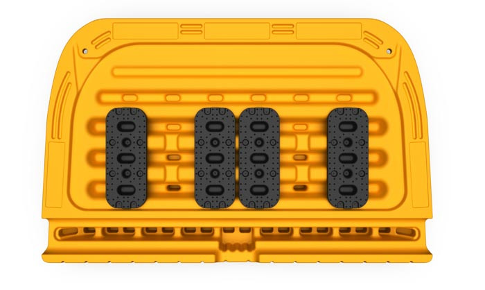 Charge 350 Kg dispose d'un motif conique spécialement étudié et de chasses-roues intégrés de chaque côté pour guider parfaitement les utilisateurs.
