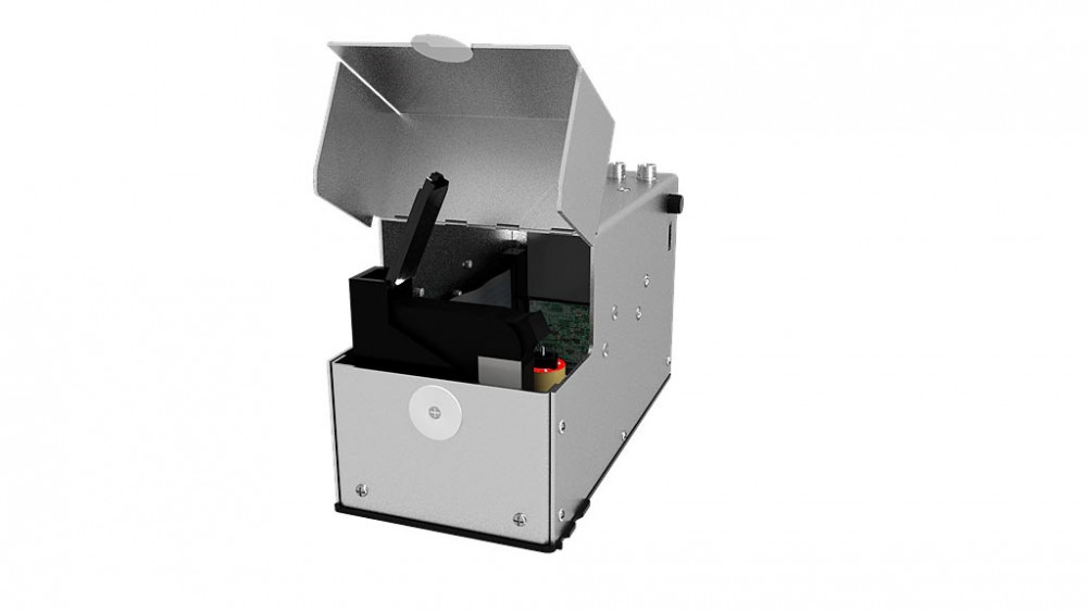 Elle fonctionne comme un tampon numérique mobile capable d’imprimer des messages multilignes sur presque toutes les surfaces, poreuses et non poreuses.