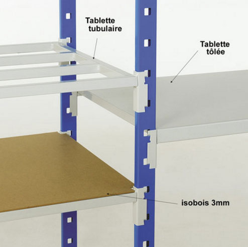 - Assemblage facile et rapide, les tablettes s'enclenchent simplement dans les perforations des montants.