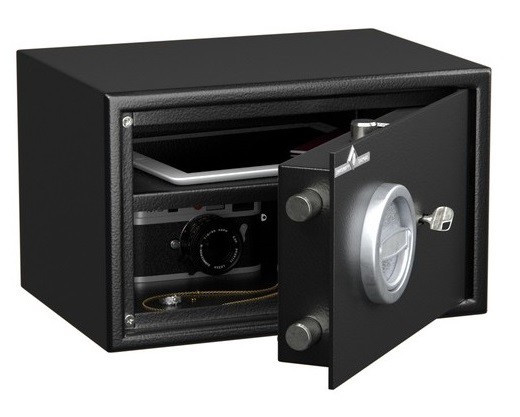 Ce coffre-fort de sécurité avec serrure permet de ranger des documents importants, des bijoux et d’autres objets de valeur.