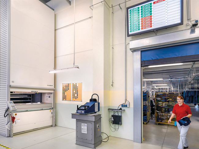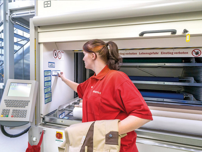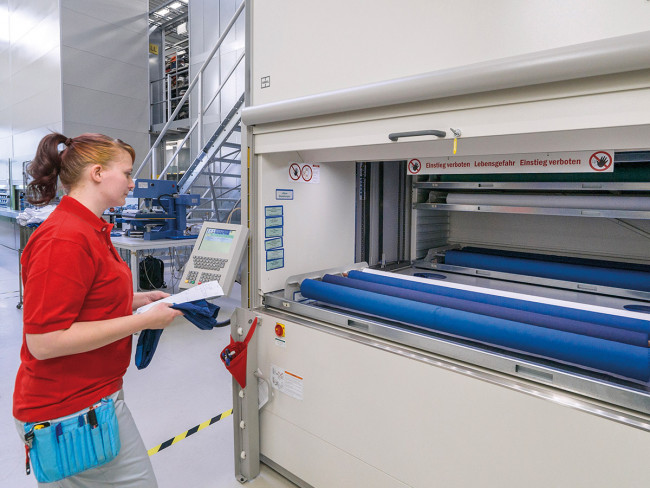 Par rapport à un magasin manuel de rouleaux classique, ici, l’encombrement est réduit de 85 % permettant d'obtenir un gain d’espace énorme ! Il n’y a plus besoin de chercher le rouleau de tissu voulu : la gestion des pools d’articles intégrée au stockeur s’en charge de manière systématique et commode.