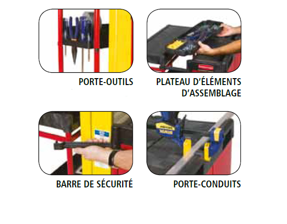 - Stockage d’objets longs : Le chariot peut être configuré pour transporter des tubes fluorescents, des dalles de plafond, etc.