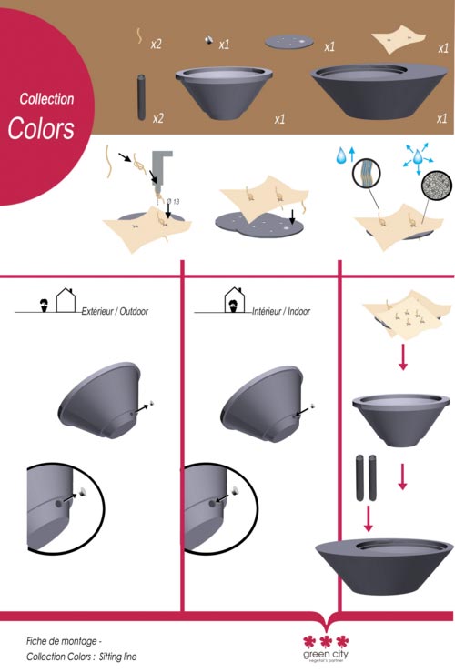- La double paroi amovible est apportée par le concept d'emboitement de 2 pots ; une enveloppe extérieure et une enveloppe intérieure avec réserve d'eau.