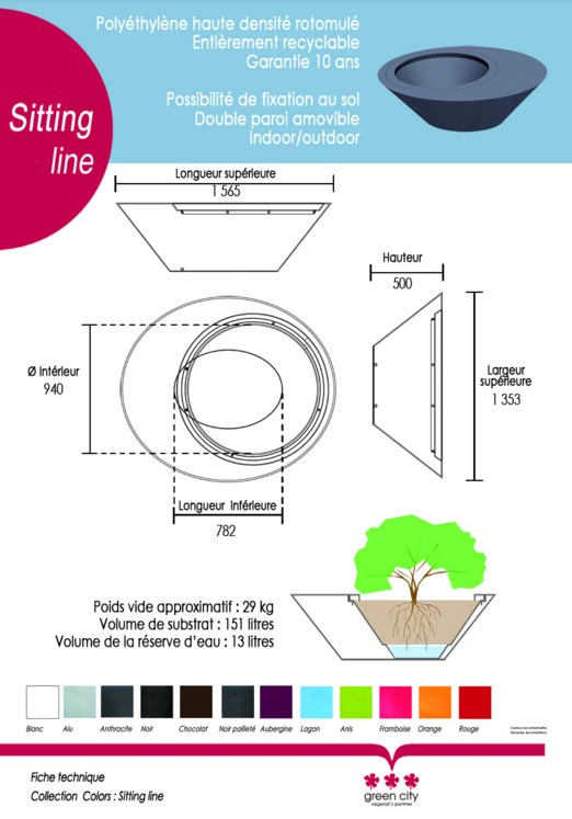 Des jardinières urbainesdesign disponibles en plusieurs couleurs.