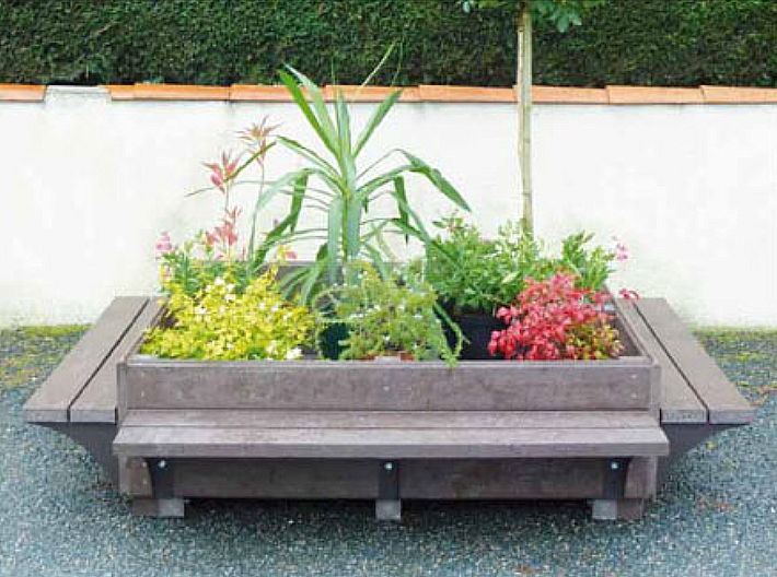 Jardinière avec 3 bancs réalisée exclusivement en matériau recyclé, teinté dans la masse et traité anti-UV. Avantages produit :