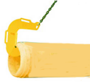 Crochets de levage à grande ouverture et prise longue munis de poignées pour faciliter la manutention permettant le levage de tuyaux ou tubes horizontaux en matériaux divers.