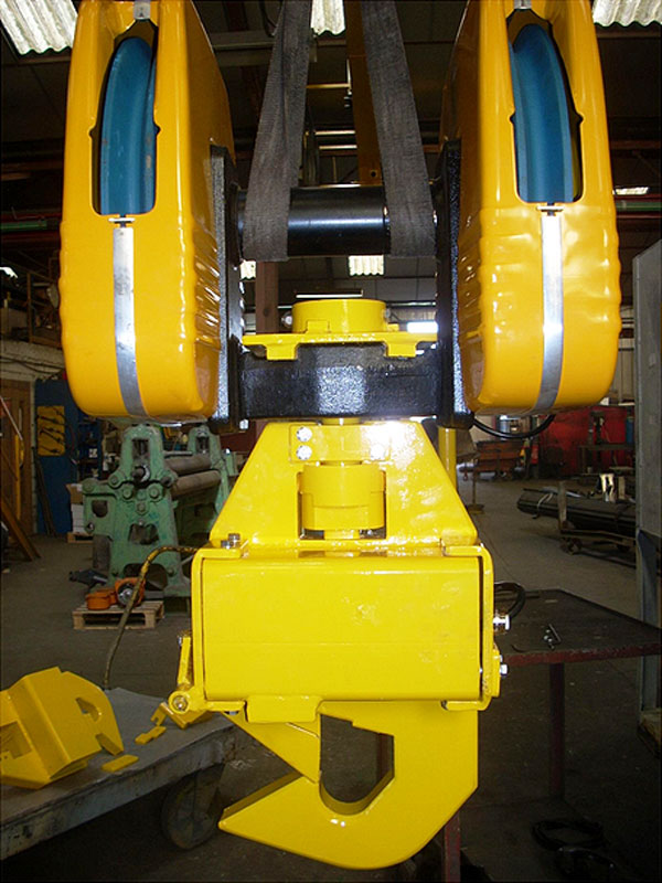 Notre crochet porte charge lourde s’installe sur un palan et permet de soulever de manière sécurisé des charges lourdes. Le contrôle de l’ouverture du crochet se fait grâce à une commande à distance.