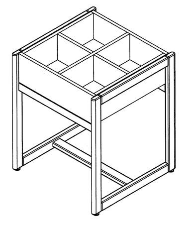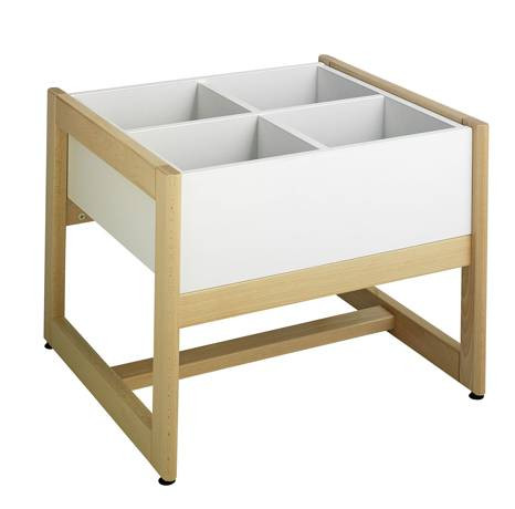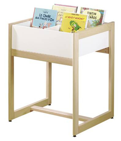Le bac à albums sur piètement repose sur une structure en