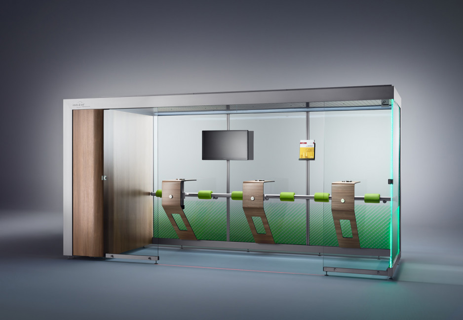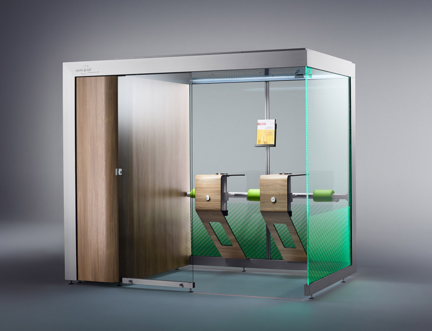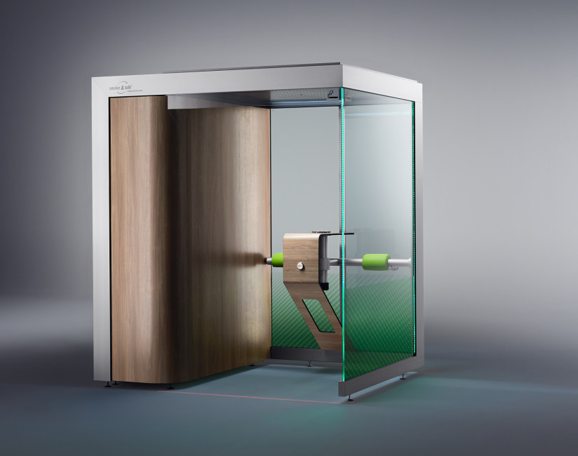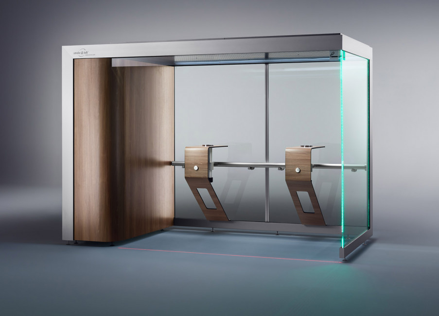 - L’intérieur de la cabine fumeur est en légère sous-pression, ce qui permet de capter la fumée et de l’aspirer dans le système de filtration.