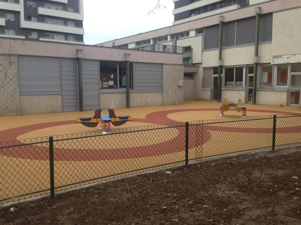 01/06/2017sol amortissant couler dans un parck exetieure d"une crèche avec un seule jeux sur resort.