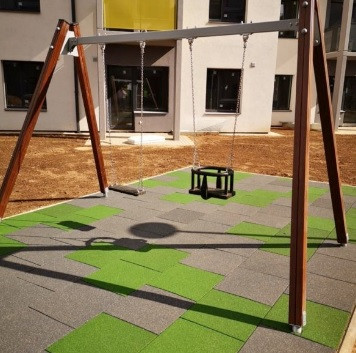 - La tranquillité des accompagnants n’est pas oubliée pour autant car ces dalles réduisent les bruits d’impact et de course