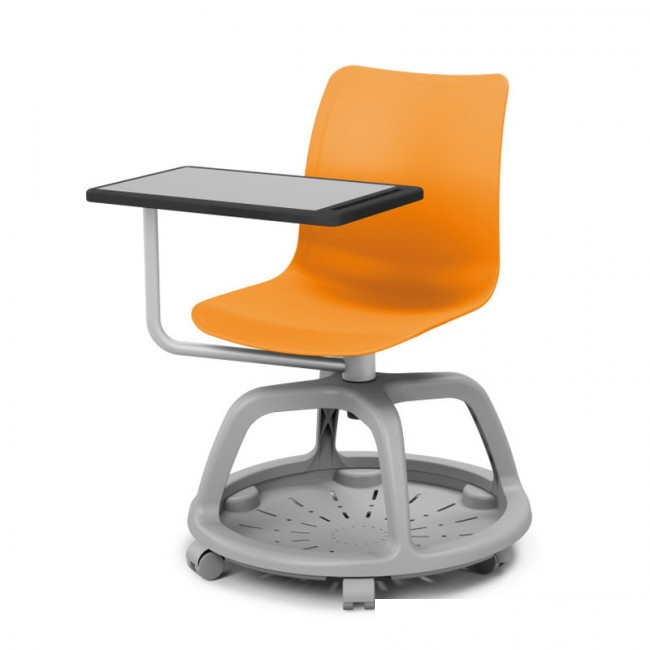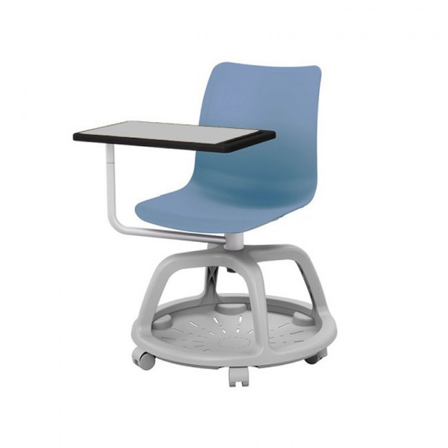 - Chaise avec panier sur roulettes pour sol dur et tablette écritoire