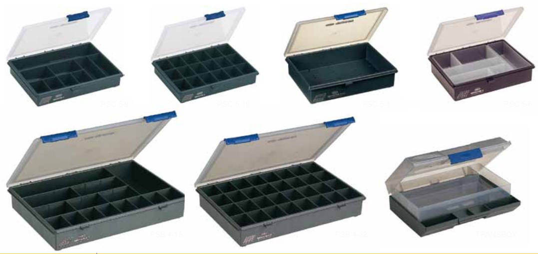Avec leurs structures en polypropylène résistants aux chocs, ces boites vous permettent le rangement de vos petites pièces dans des compartiments fixes ou des godets amovibles.