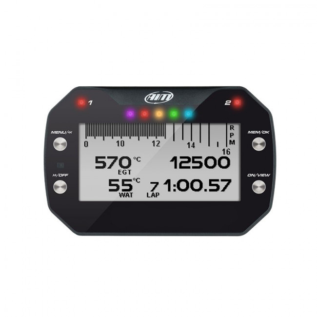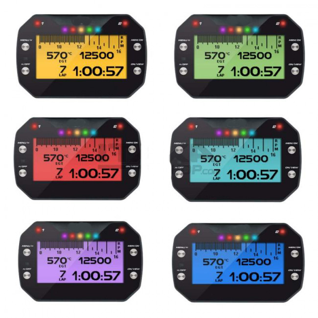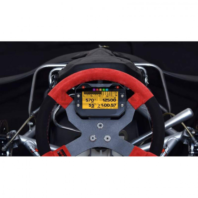 Afficheur électronique pour karting monté sur le tableau de bord du véhicule et se connecte à différents capteurs pour collecter des données telles que la vitesse, le régime moteur, la température du moteur, la pression des pneus, les temps au tour, etc.