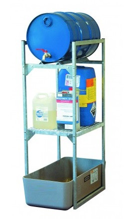 Rayonnage 120 avec 1 support pour fût de 60 litres et 1 caillebotis pour petits récipients