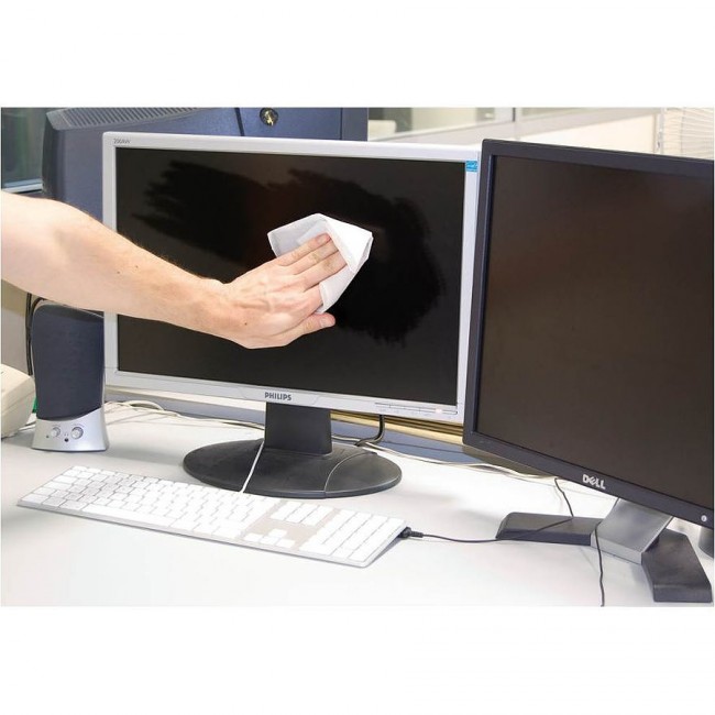 Ces Lingettes sont imprégnées d'une solution biodégradable pour le nettoyage des surfaces plastiques (claviers, etc...) et vitrées (écrans, etc...) du matériel informatique et bureautique.