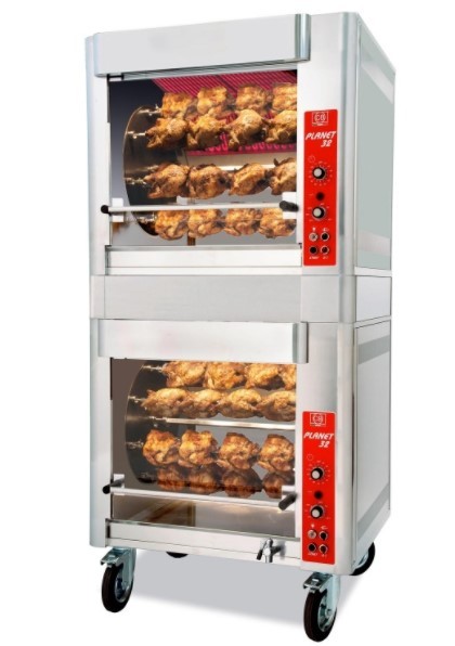 Cette rôtissoire planétaire avec résistances à infrarouges,est un équipement professionnel qui permet de cuir jusqu'a 96 poulets