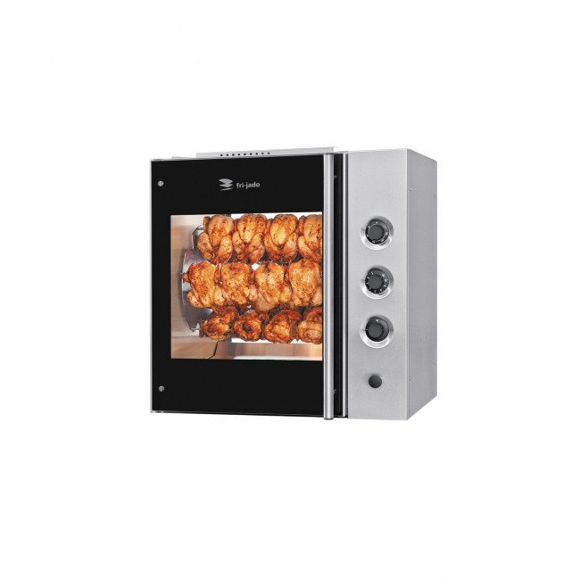 - Capacité de cuisson en 6 heures : 75 volailles de 1,2 kg (15 volailles / heure + chargement / déchargement)