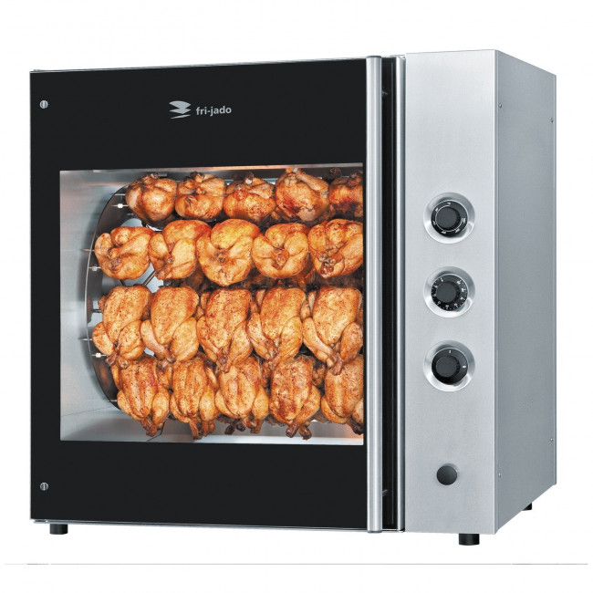 Cette rôtissoire électrique à balancelles programmable permet de cuire de façon uniforme vos poulets.