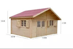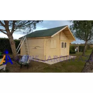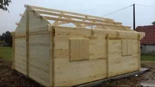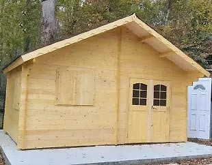 - Parois : Madriers avec rainure languette en sapin épaisseur 42 mm. Coupe chalet pour un assemblage des parois avec angle solide et étanche. Coupe biseautée en bout de lames.
