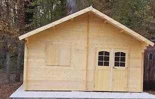 - Un abri de jardin en bois de 42 mm très bien proportionné avec madriers double rainurage