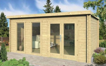 Un chalet de jardin fabriqué en sapin d'Europe du nord de première catégorie, d’un design contemporain et moderne.