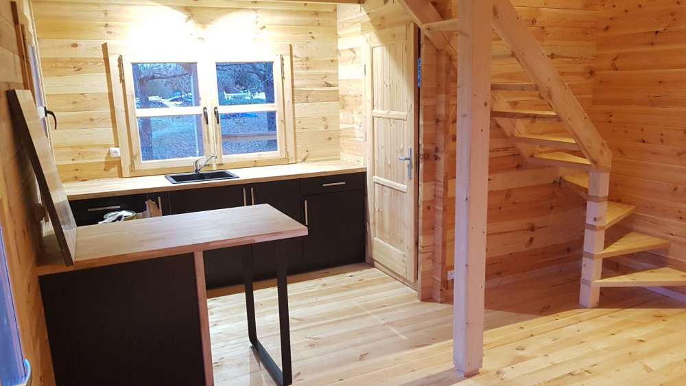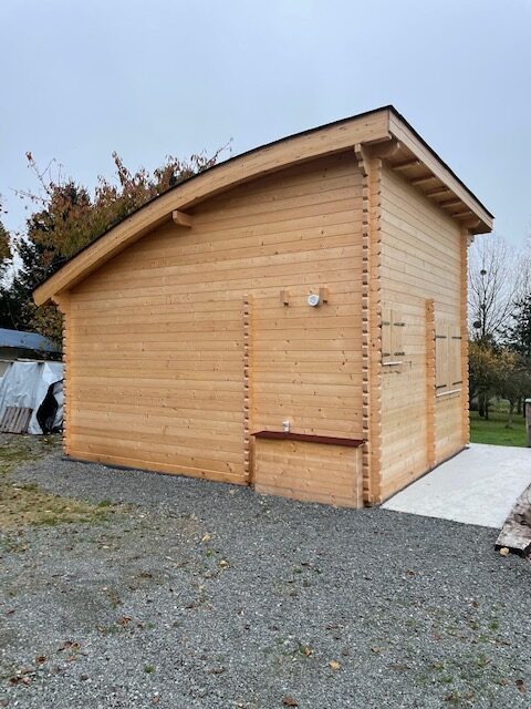 - Epaisseur madriers : 44, 60, 90 mm ou en double paroi de madrier