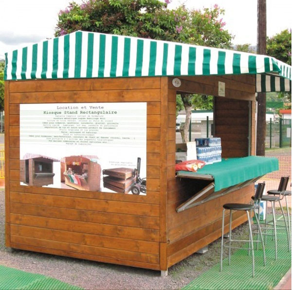un chalet pour vente bar et petite restauration à emporter, ouvert deux coté, face et gauche, minimum de 10 m2.