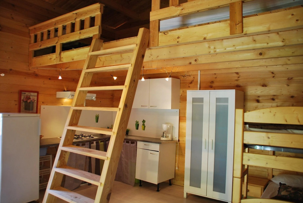 Ce chalet mezzanine en bois massif pourra devenir votre véritable cottage chaleureux pour les vacances .
