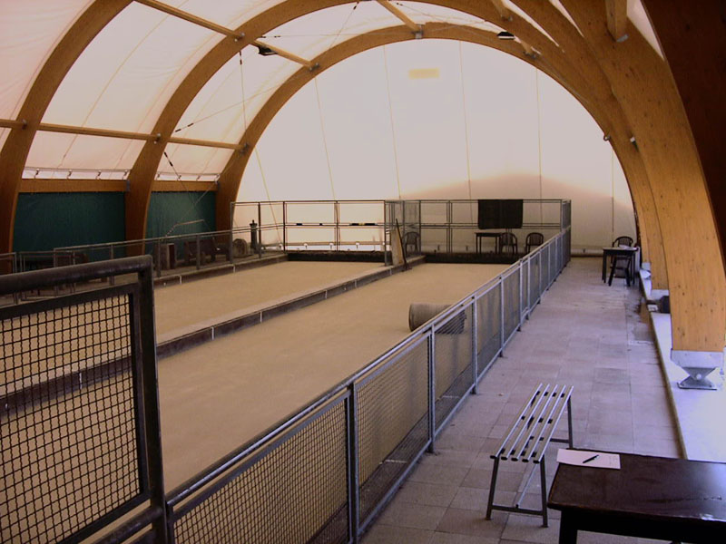 Nous avons un terrain de pétanque où nous souhaiterions aménager un bâtiment couvert ou couvrir une partie du terrain pour la pratique de la pétanque en temps hivernal et pluvieux. Surface = 150m2 / longueur 19m / largeur 8m / Hauteur 5,5m . SVP pourriez-vous me proposer un type d"abri et un devis cordialement T.DUPREY Maire