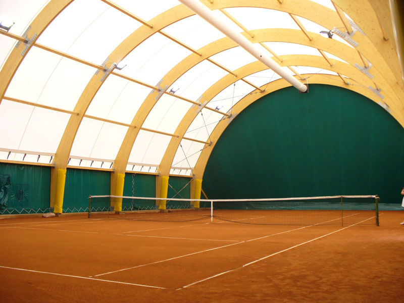 24/08/2021Terrain de tennis couvert, structure lamellé collé, toile tendue.