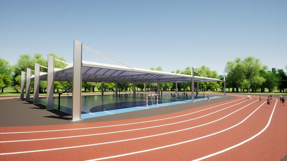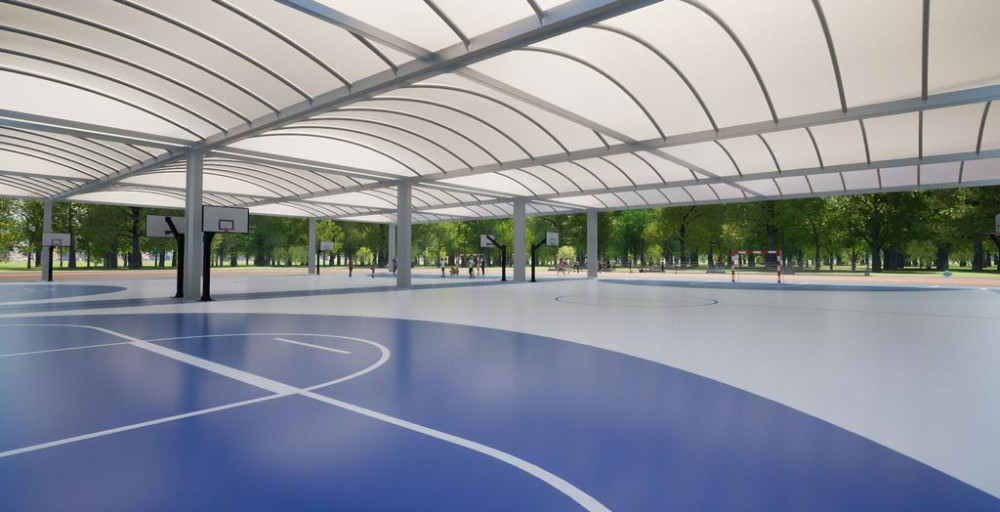 Le toit du terrain multisport est constitué d’une