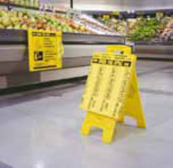 Cette version avec poignée se fixe sur un panneau d’avertissement ou sur toute autre surface plane.