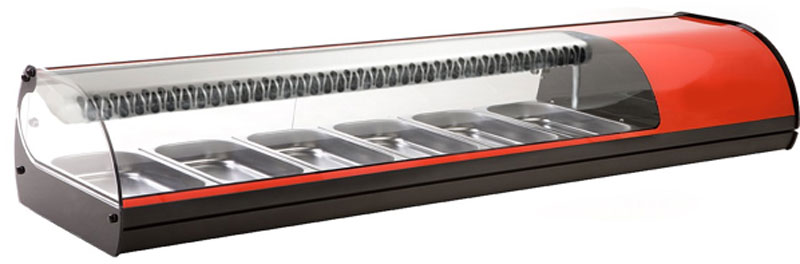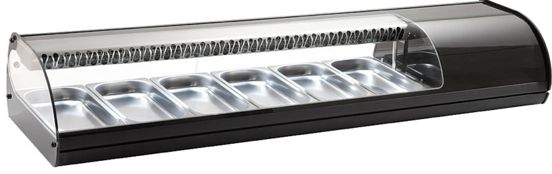 Cette vitrine gastronorm réfrigérée permet d'exposer avec un maximum de visibilité vos tapas, salades ou fruits.
