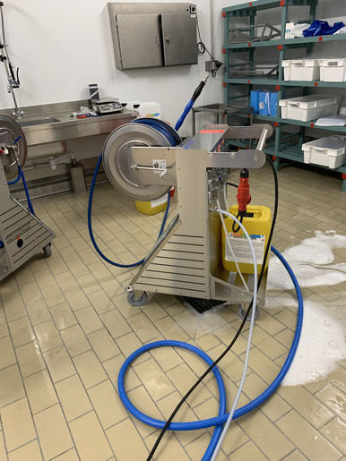 Centrale mousse pour la désinfection des surfaces ouvertes en industries agroalimentaires.