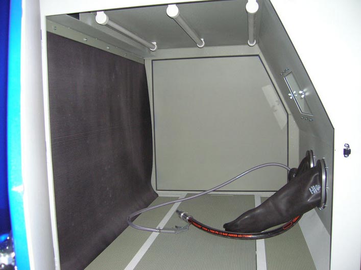 - Parce que les pièces sont sablées dans une cabine fermée, l'atelier reste toujours propre et sans poussière.