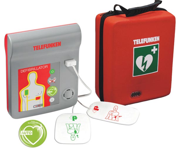 - Le défibrillateur TELEFUNKEN a certifications les plus exigeantes : Marquage CE, EN 60601-1 :2006, EN 60601-1-4 :1996, EN 60601-1 :2007, EN 60601-2-4 :2003