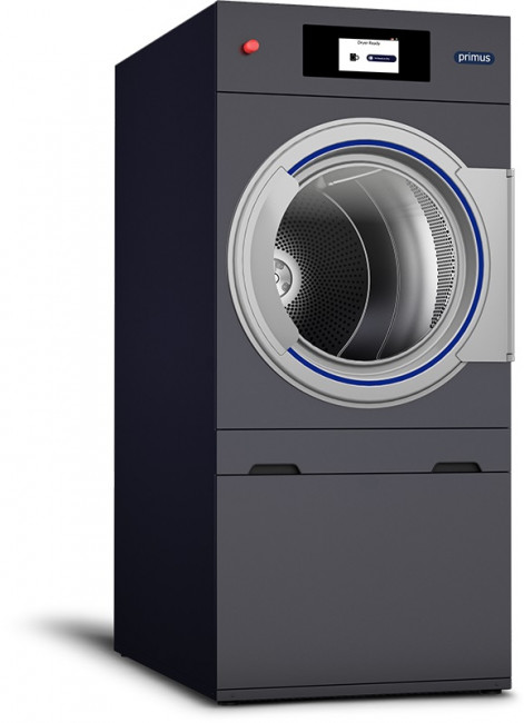 Ce sèche-linge rotatif professionnel est équipé d'une pompe à chaleur à inverseur, d'un moteur à fréquence contrôlée et d'un tambour réversible de grand diamètre.
