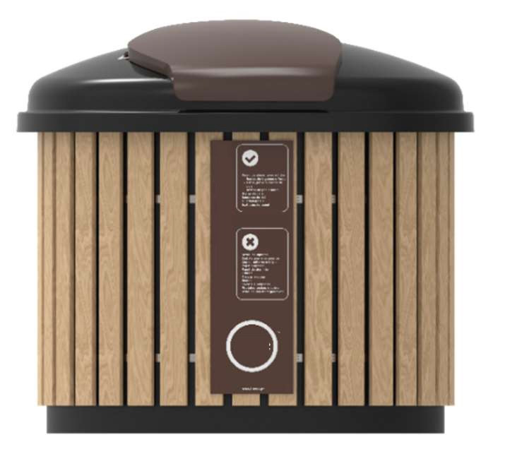 Il est disponible dans une variété de revêtements tels que le bois, le plastique recyclé, l'aluminium et le revêtement d'image, assurant son intégration harmonieuse dans les emplacements de collecte existants ou nouvellement créés.