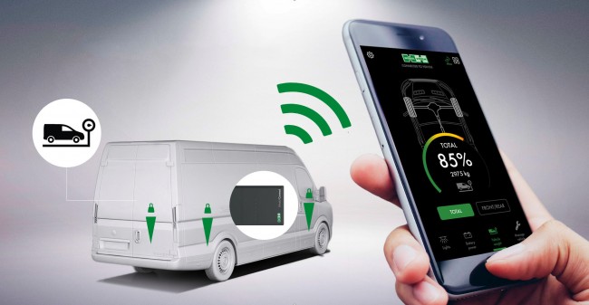 Le conducteur peut donc surveiller la répartition de la charge embarquée ainsi que la charge totale sur un panneau d'affichage, un smartphone et/ou une tablette.