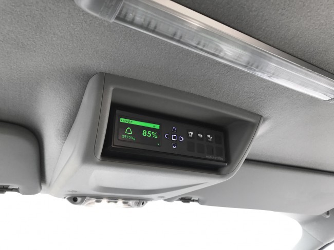 Grâce au système de pesée embarquée, contrôlez en temps réel le poids du véhicule. Le système calcule les données grâce à 4 accéléromètres installés sur les essieux avant et arrière du véhicule.