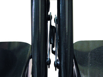 Ossature en acier rond Ø 22 mm avec barres de renfort à l’avant et à l’arrière Finition peinture époxy cuite au fourbr Coloris structure : noir