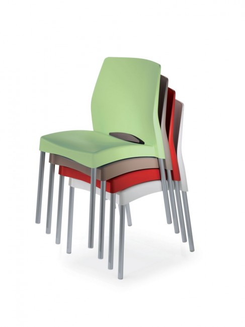 Cette chaise empilable pour collectivités et divers usages est destinée pour une utilisation en extérieur.