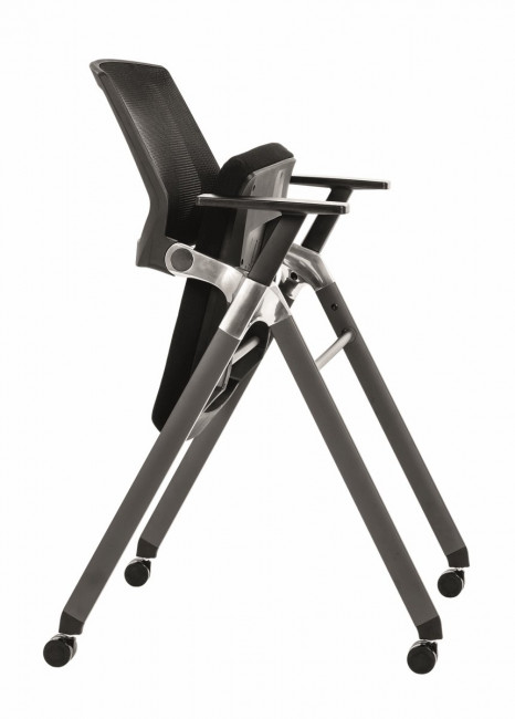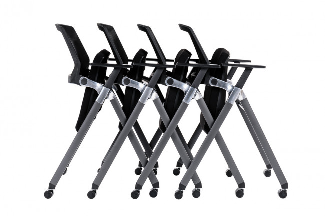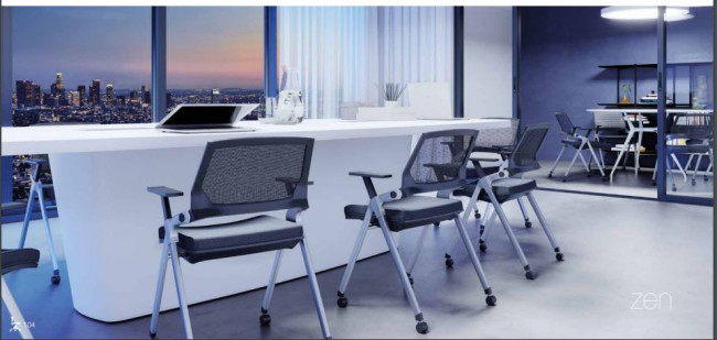 La chaise ZENITUDE est une chaise de conférence à roulettes avec une inclinaison flexible du dossier filet. Grace à son dossier en résille noire, il apporte un soutien confortable à cette chaise. Le piétement est anthracite. Des roulettes complètent le piétement, afin de pouvoir le déplacer plus facilement. La chaise est munie d'accoudoirs en polypropylène. Deux gammes de tissus sont disponibles : tissu Bondai M1 non feu et tissu Bloom (enduit). Grace à sa fonction abattante, elle peuvent se ranger plus facilement l'une contre l'autre.