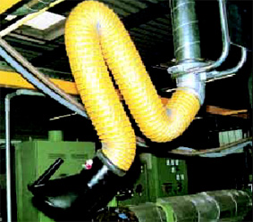 C"est pourquoi je suis intéressée par vos tuyau d"aspiration flexible. Machine déplace un systéme de soufflage d"air à 50°C sur une course de 600mm. La sortie d"extraction d"air de mon client est de Ø100mm environ.