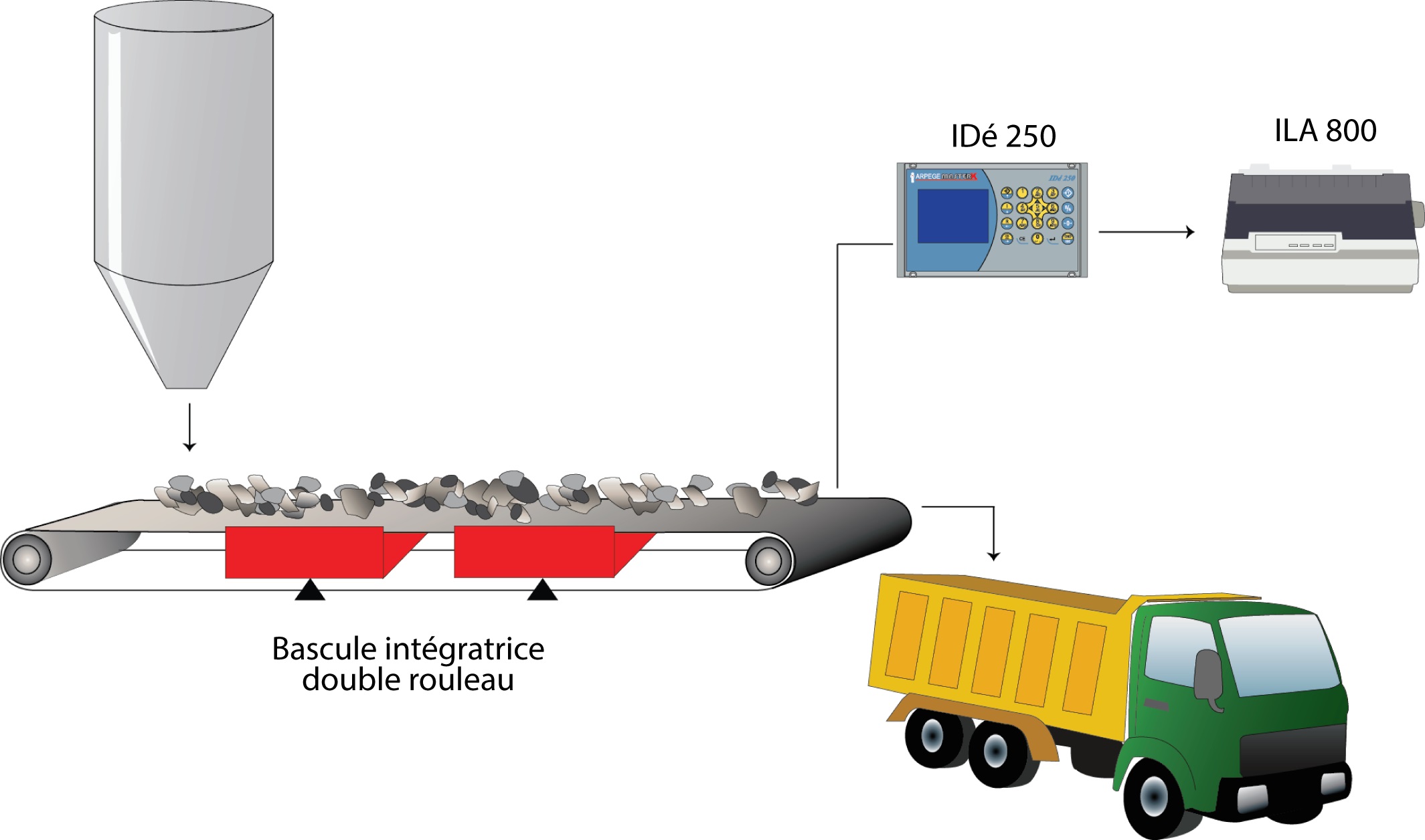 L’indicateur de pesage, équipé du logiciel totalisateur continu (Peseuse sur bande) a été conçu pour le pesage en continu d'un produit en vrac, sur une bande transporteuse.