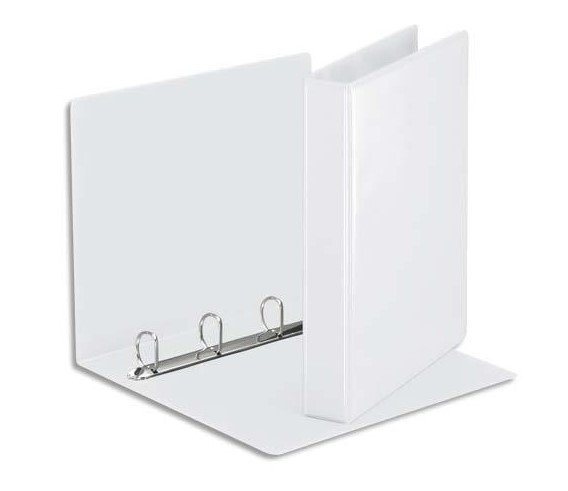 Le classique : Classeur à anneaux personnalisable, 4 anneaux diamètre 25 mm, dos 40 mm. Capacité 200 feuillets et 50 pochettes. Coloris Blanc. Mécanismes 4 anneaux en D sur 3è de couverture. Structure soudée, résistante, imperméable. Pochette cristal pour personnalisation sur 1ère de couverture ou/et dos.