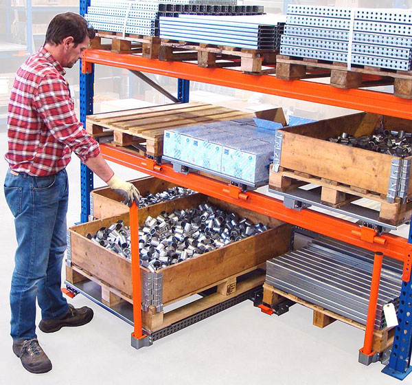 Les tiroirs PICK UP peuvent être utilisés en parties basses, sous les rayonnages. La manutention dans cette zone de stockage y est pénible et parfois dangereuse